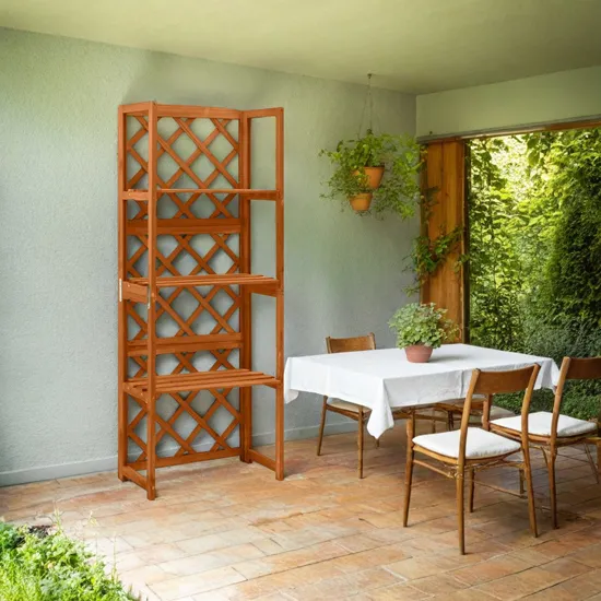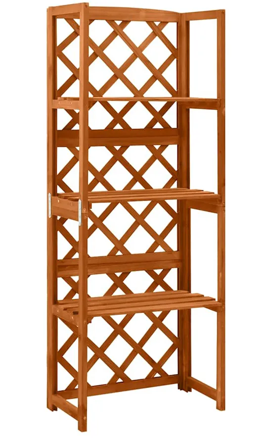 Brązowy drewniany regał na kwiaty z półkami - Exo