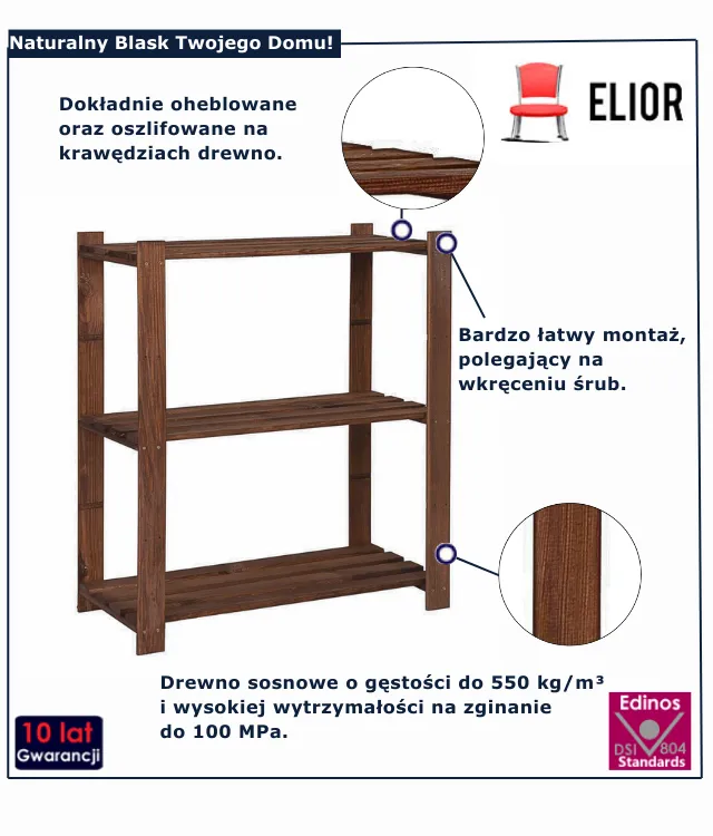 Dotyczy: Naturalny regał drewniany z 3 półkami - Roots