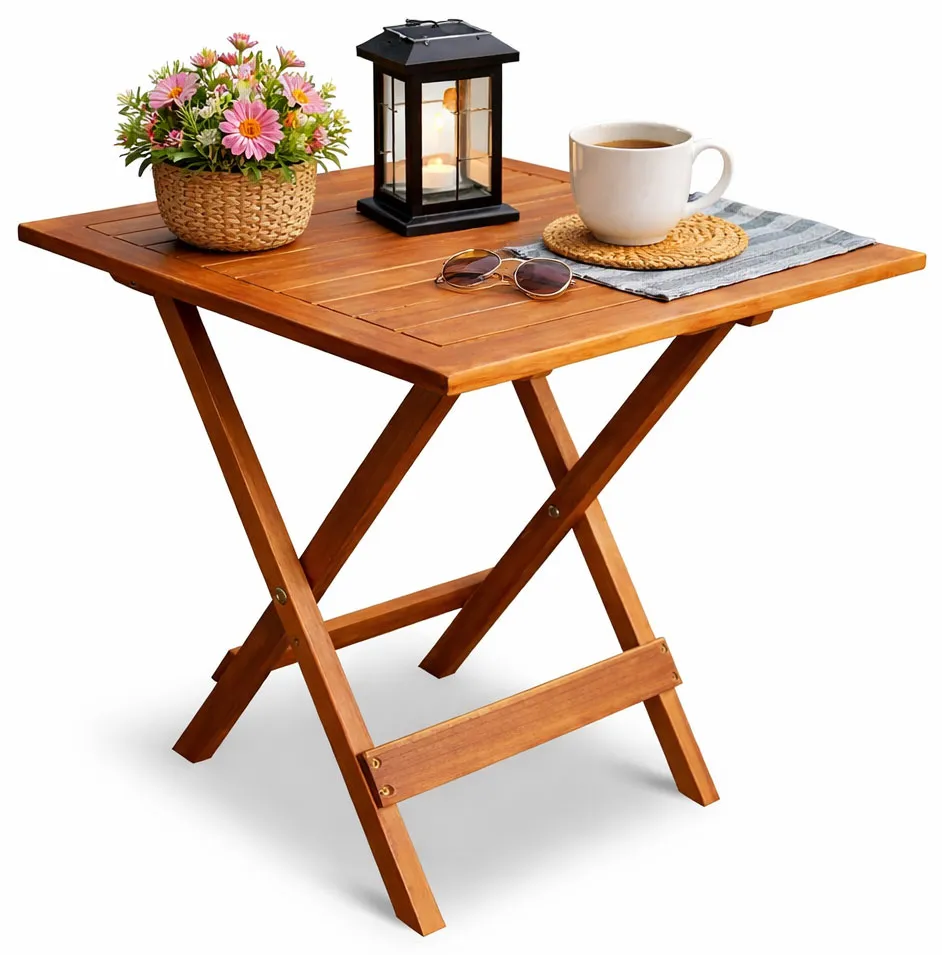 Meble ogrodowe w naturalny sposób potrzebują dodatkowej ochrony. Opady, promieniowanie słonecznie, wahania temperatury, a także wpływ bakterii – to wszystko powoduje, że tego typu wyposażenie może łatwiej ulec zniszczeniu. Kupując Besta, podobne zmartwienia Cię nie dotyczą. Niejednokrotnie w przypadku produktów innych firm swój mebel musiałbyś wymieniać już po roku. Ten stolik zaś pozostanie z Tobą na długie lata. O jego jakości świadczy bowiem olejowane drewno akacjowe. Materiał jest zabezpieczony przed czynnikami atmosferycznymi, posiada również dużą odporność na obciążenie. Do konserwacji wystarczy Ci natomiast trochę wody oraz papierowy ręcznik. W pełni higieniczne drewno posiada naturalne słoje, co nadaje mu eleganckiego wyglądu. Całość można składać oraz dogodnie przenosić.