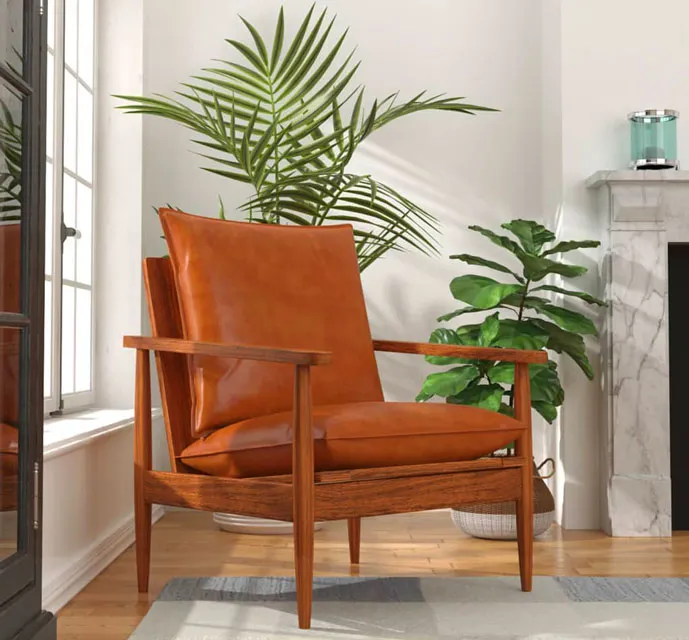 Wizualizacja brązowego fotela lisek Piero w salonie