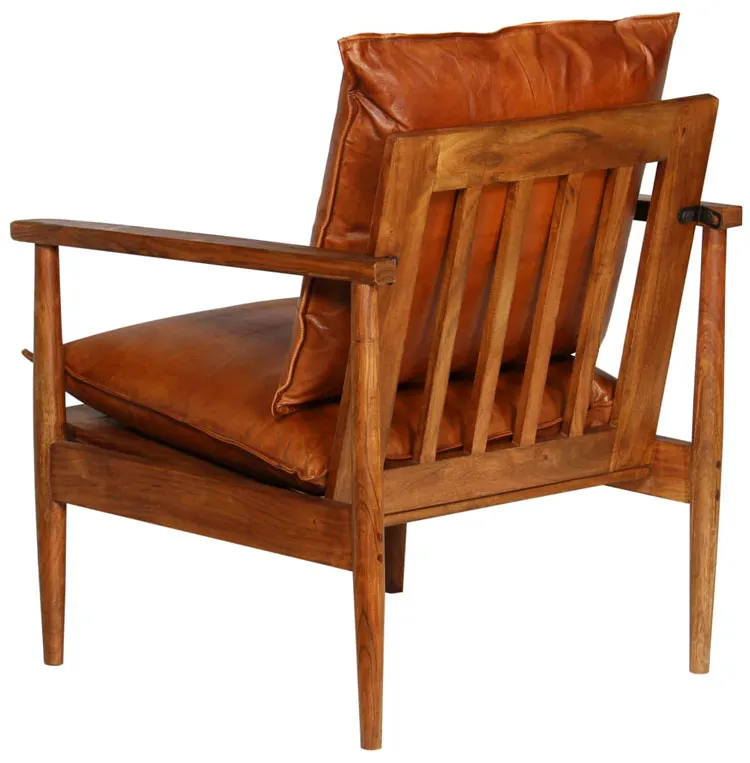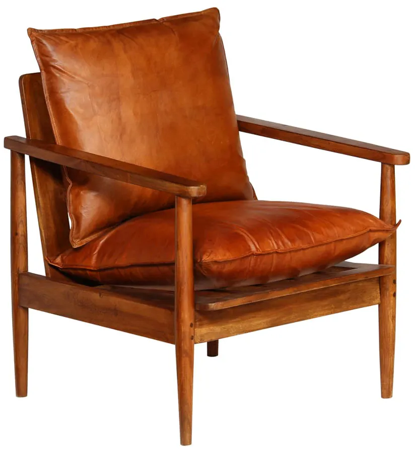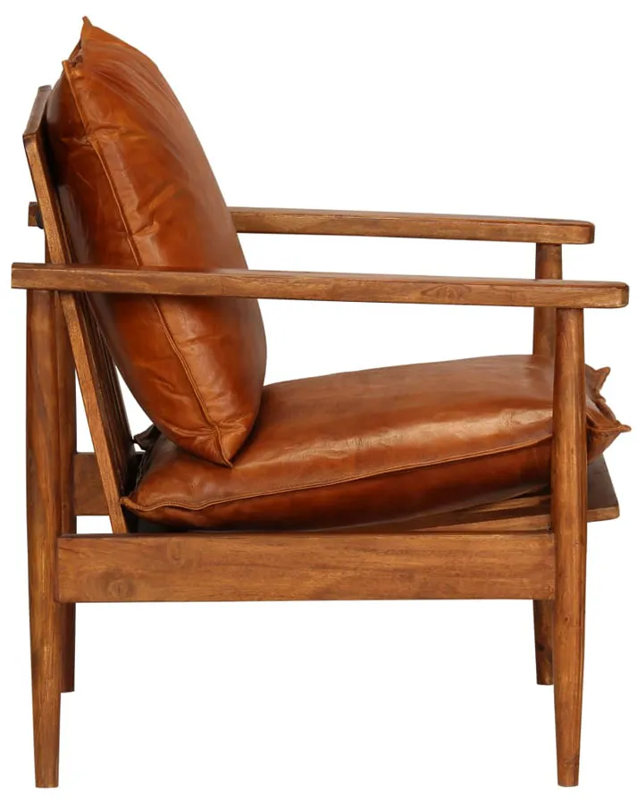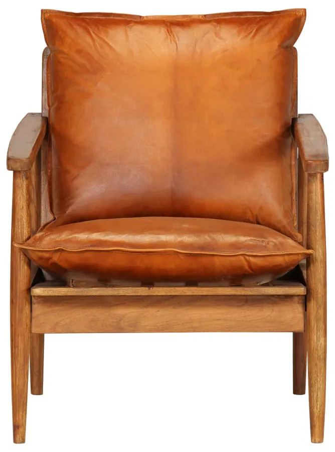 Brązowy fotel skórzany z drewnianymi podłokietnikami - Piero
