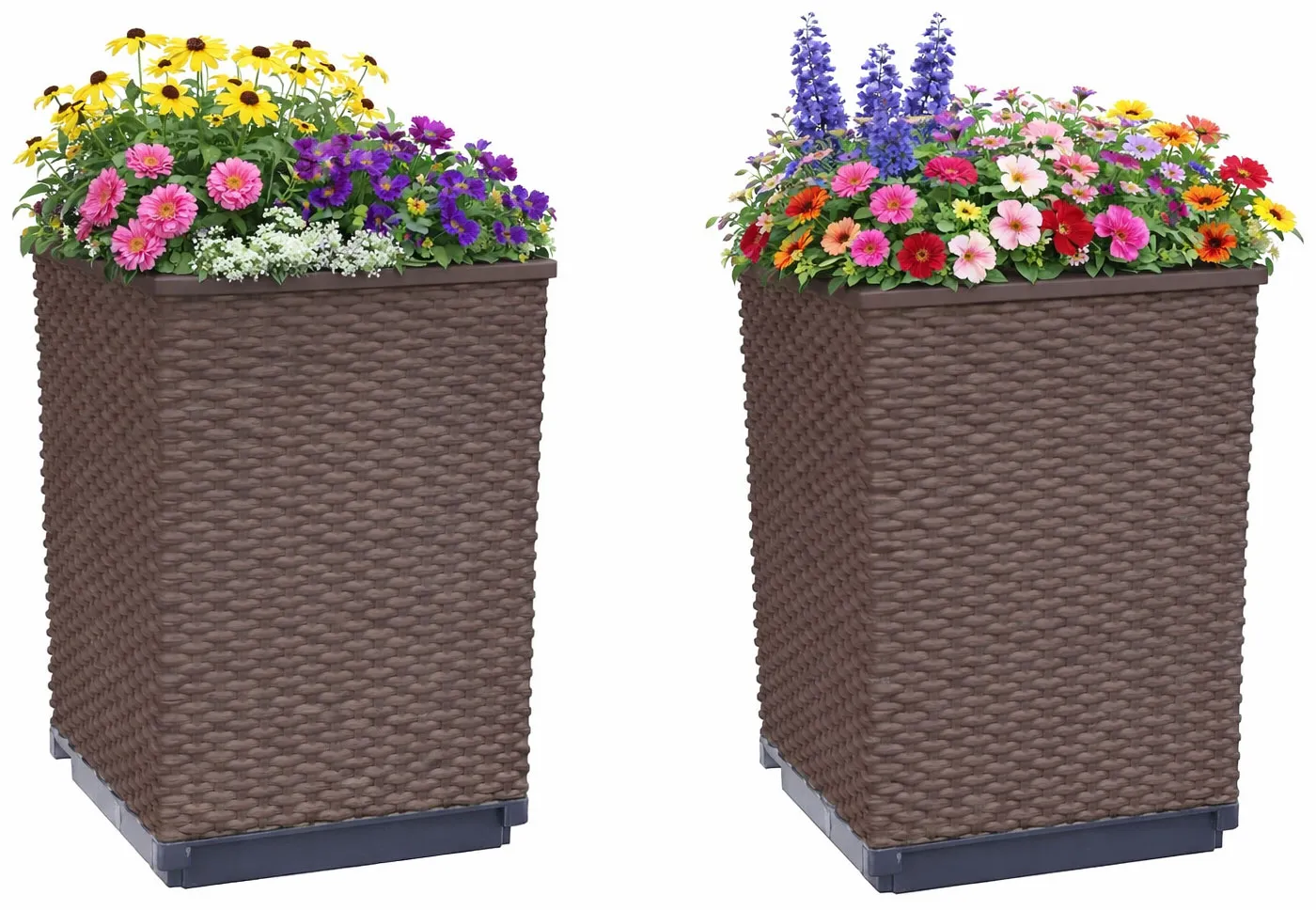 • Trwały materiał: wykonane z wytrzymałego tworzywa donice są nie tylko lekkie i łatwe w obsłudze, ale także odporne na wszelkie warunki atmosferyczne, zapewniając Twoim roślinom doskonałe warunki do wzrostu.