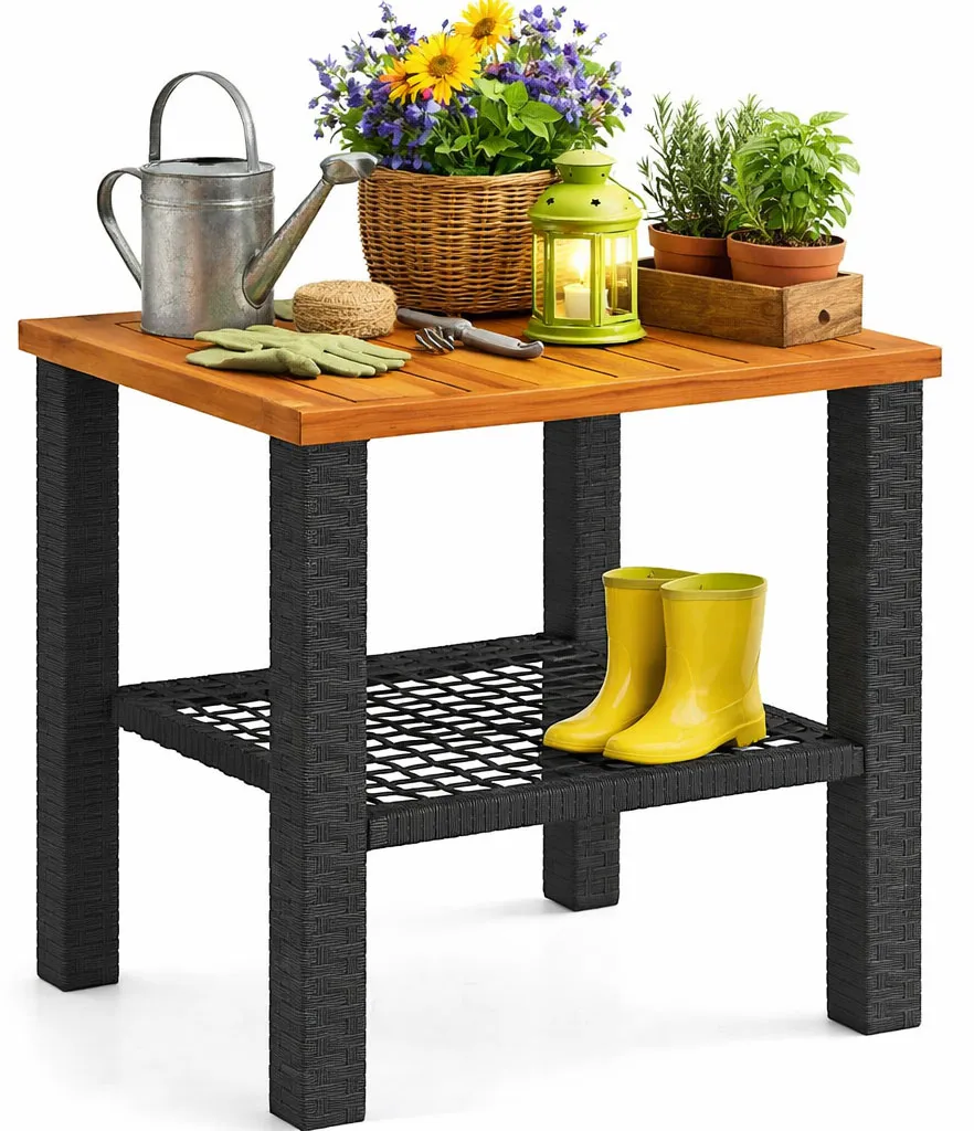 Brązowy kwadratowy stolik kawowy do ogrodu - Livers 3X