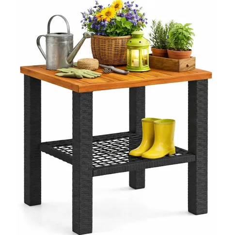• Materiał: lite drewno akacjowe, stal malowana proszkowo oraz technorattan.