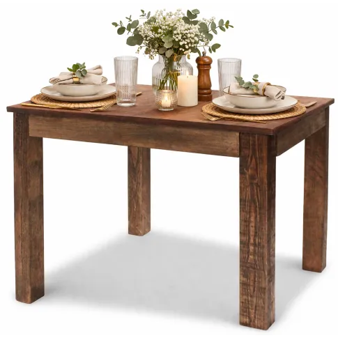 - Wymiary: szerokość – 80 cm, długość – 80 cm, wysokość – 76 cm - Materiał: trwałe, lite drewno z odzysku odporne na czynniki zewnętrzne i skutki codziennego użytkowania. - Kolor: brązowy. Kliknij w link sprawdź także inne stoły klasyczne w sklepie Edinos.pl. Stwórz swój praktyczny zestaw mebli.