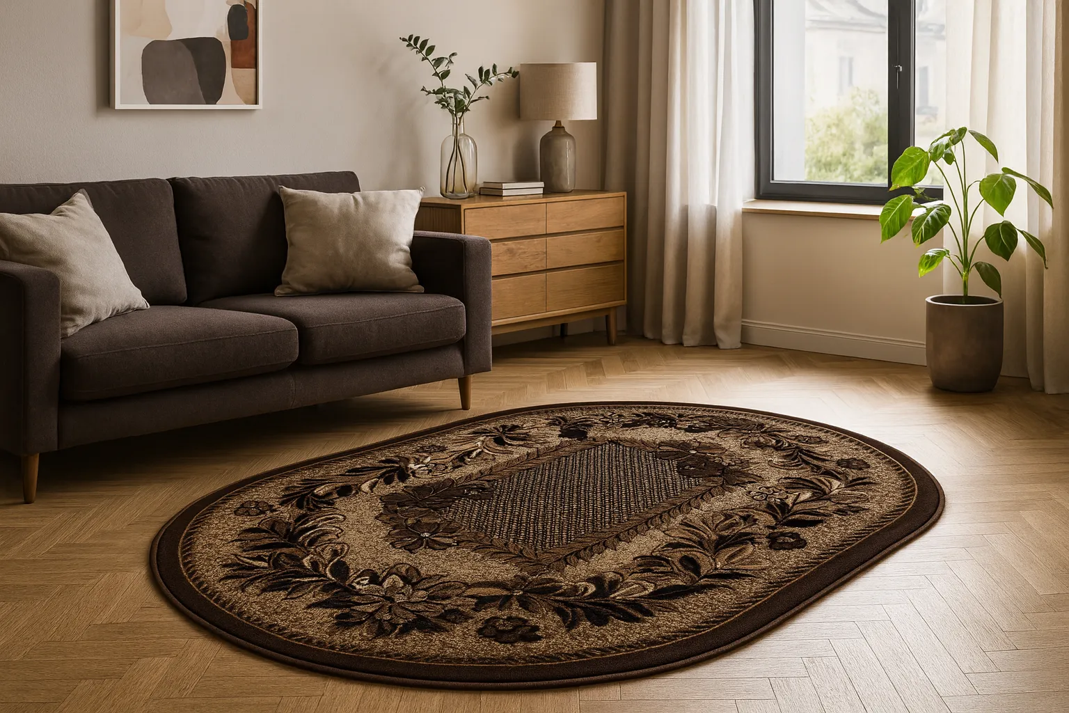 Dotyczy: Brązowy owalny dywan z wzorami - Fola