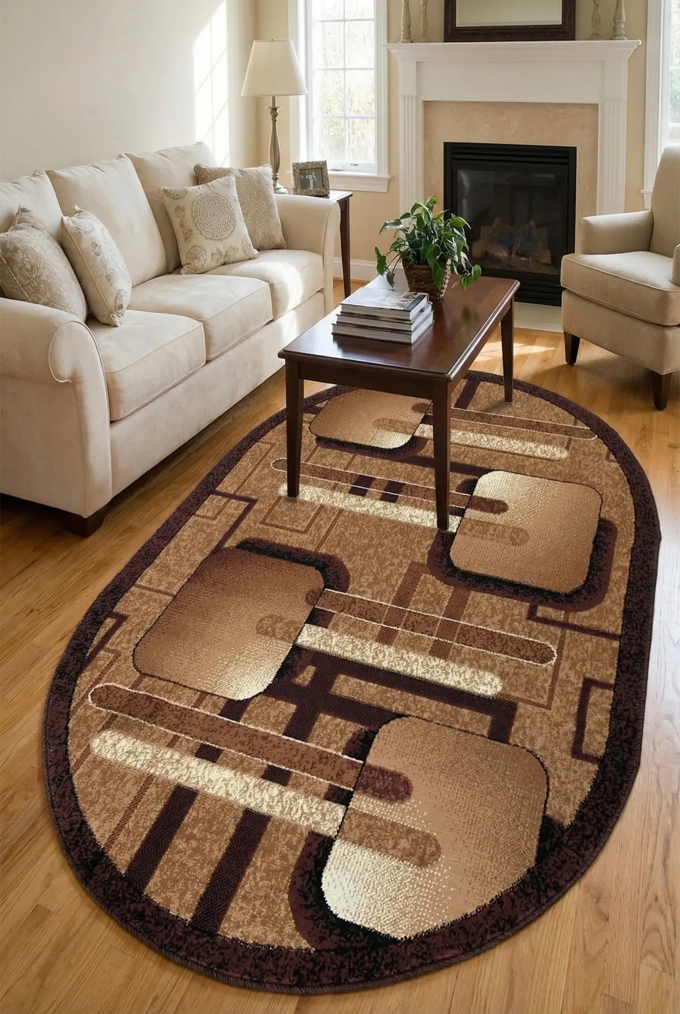 Dotyczy: Brązowy owalny dywan rozeta - Spelter