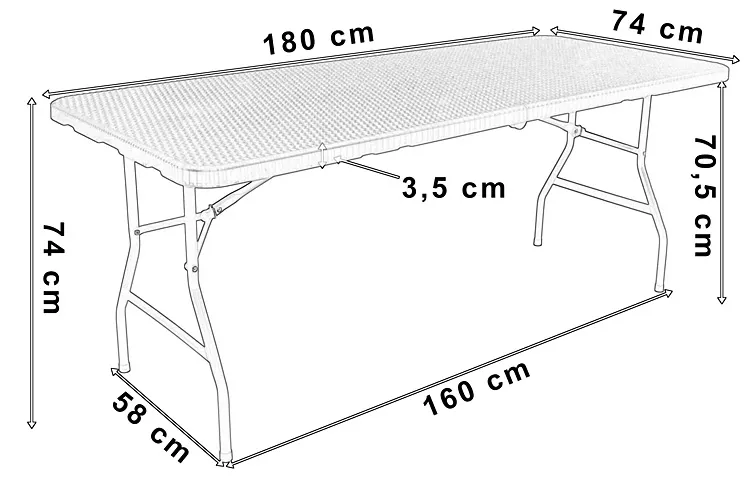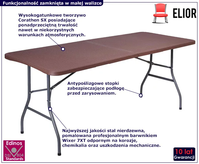 Dotyczy: Szary prostokątny stół składany w walizkę 180 cm - Eugene 3X