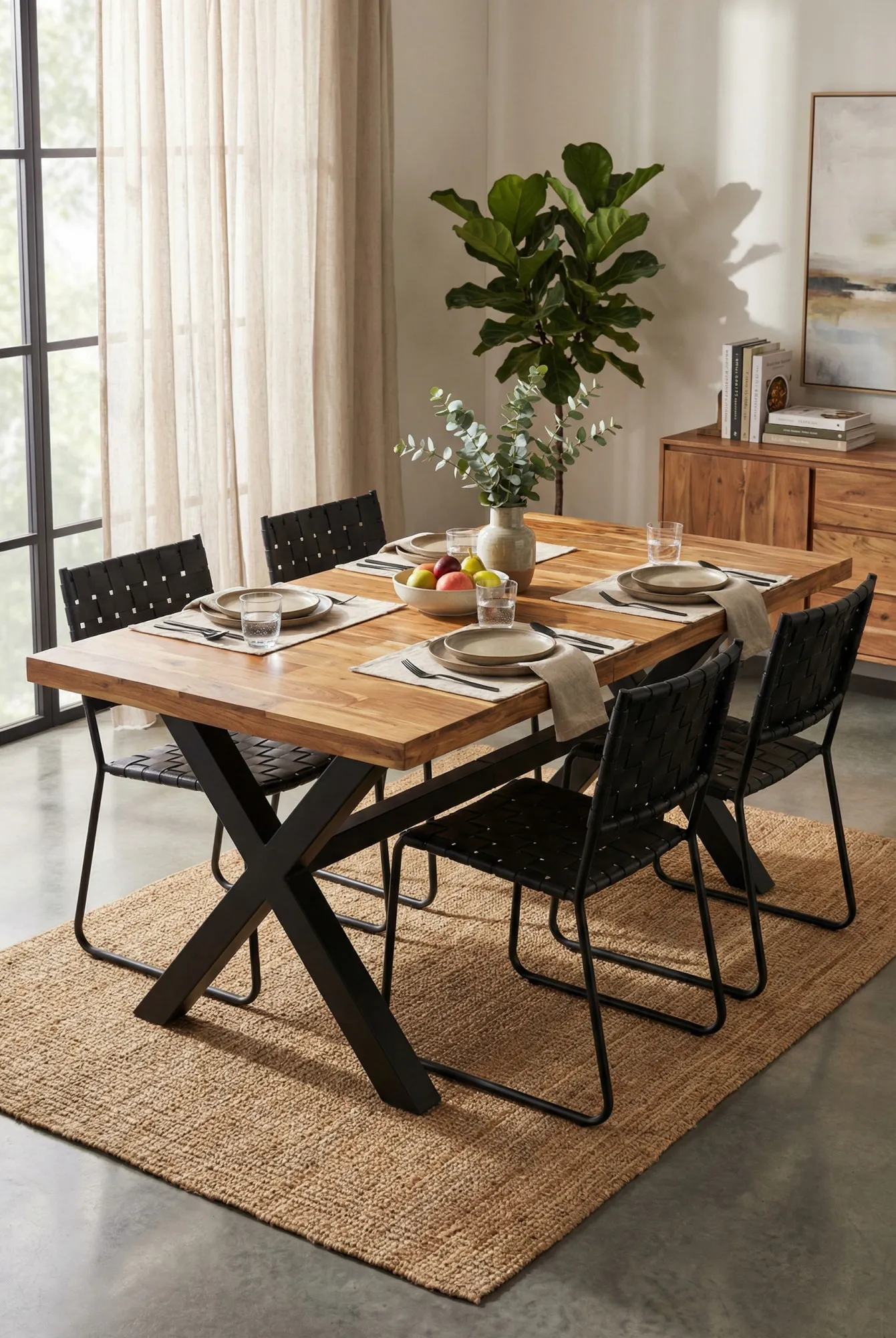 Ten unikalny dodatek do kuchni, jadalni lub salonu wykonany z litego drewna akacjowego i mango jest niezwykle ponadczasowy dzięki swojej naturalnej, ale i zróżnicowanej barwie. Dodatkowego charakteru nadaje mu czarna podstawa o ciekawym kształcie litery X. Ta solidna i nowoczesna konstrukcja mocno przywołuje na myśl styl industrialny. Dlatego, jeśli cenisz sobie przemysłowy lub loftowy wystrój mieszkania, skuś się na te komfortowy mebel Blaki, który stanie się „gwiazdą” w Twoim domu. Ponadczasowa kolorystyka, czyli połączenie brązu i czerni na pewno sprawdzi się w każdym wnętrzu – minimalistycznym, vintage, jak i klasycznym. Oprócz tego standardowy rozmiar stołu marki Edinos Premium sprawi, że możesz ustawić go nawet w małej jadalni lub salonie. Montaż mebla Blaki nie powinien natomiast stanowić dla Ciebie problemu, ponieważ wystarczy tylko połączyć blat z podstawą, a więcej informacji na temat tego produktu znajdziesz w dołączonej do niego instrukcji.