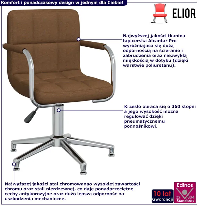 Dotyczy: Pikowany fotel biurowy obrotowy bez kółek taupe - Lonja