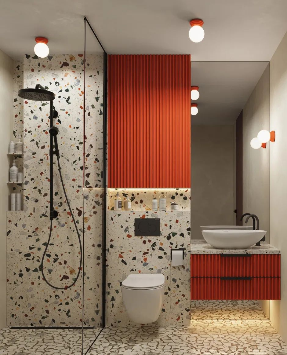 Aranżacja wnętrza z brzoskwiniowym szklanym kinkietem M164-Weskom