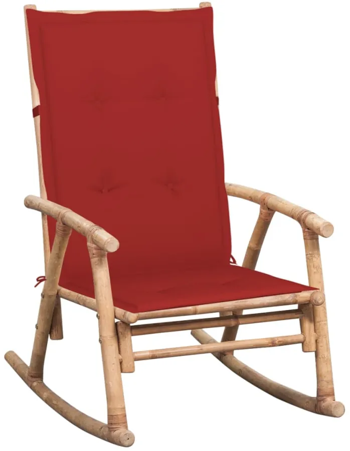 Bujany fotel bambusowy z czerwoną poduszką - Stella