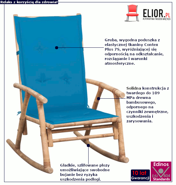 Dotyczy: Bujany bambusowy fotel ogrodowy z czarną poduszką - Stella