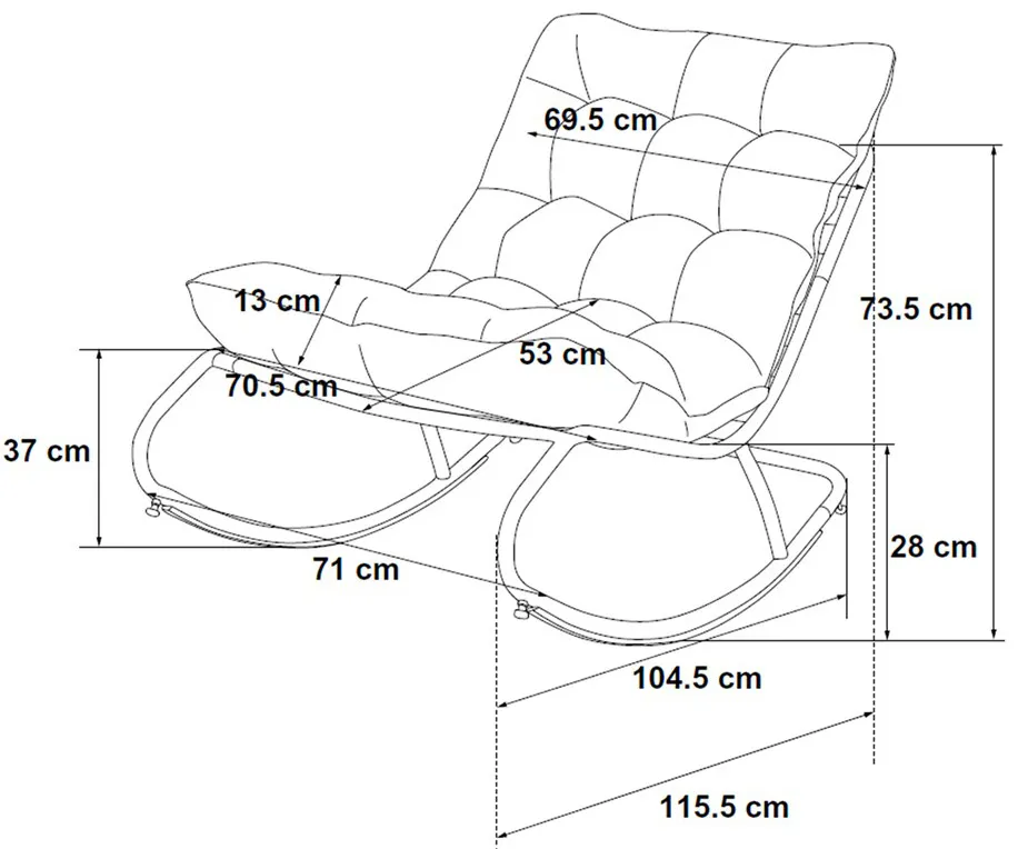 Poduszka jest gruba, a mechanizm bujania działa płynnie. Fotel zajmuje jednak trochę miejsca natomiast wymiary się zgadzają z tymi podanymi na stronie