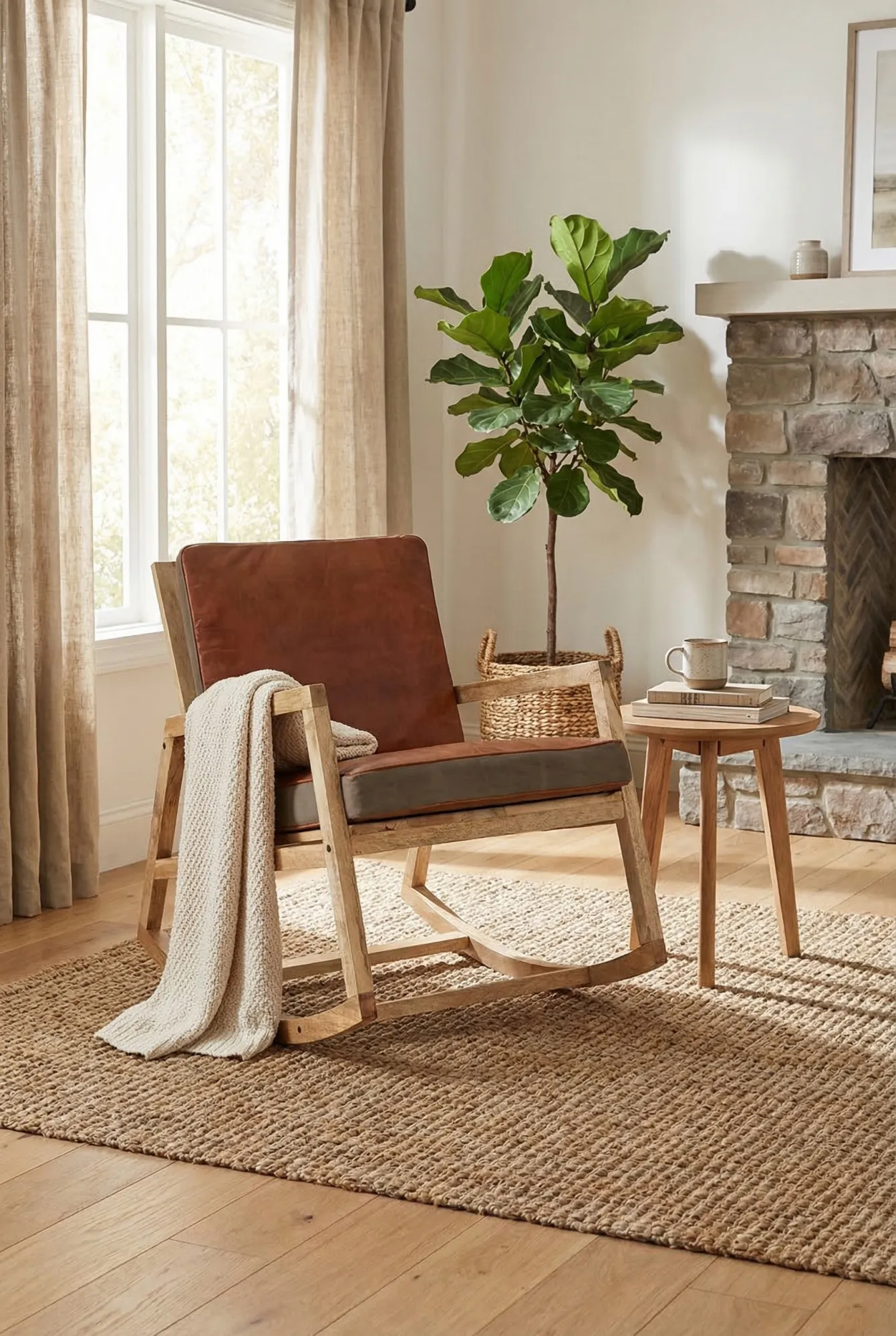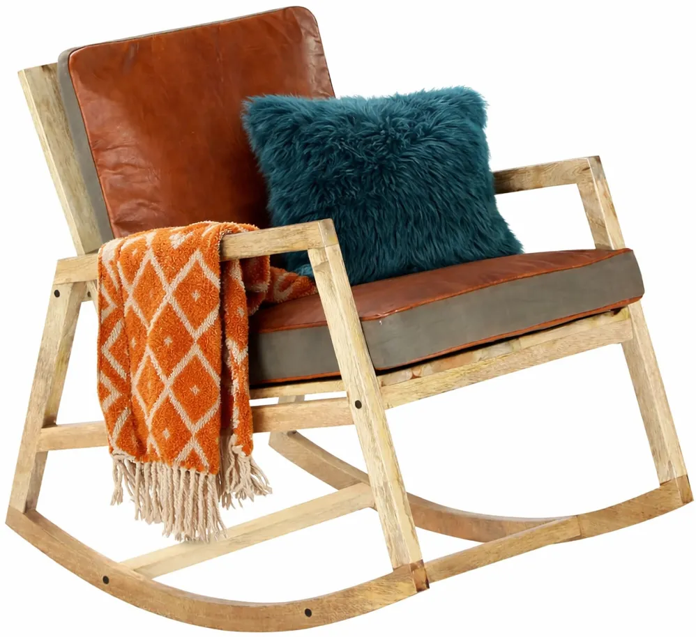 Nie ma nic bardziej kojącego niż delikatne kołysanie w ulubionym fotelu bujanym, które przenosi myśli w świat beztroskiego relaksu. Fotel bujany Pegi marki Edinos Premium to prawdziwy powrót do klasycznej elegancji, połączony z niezrównanym komfortem użytkowania. Jego rustykalny design w stylu vintage przypomina meble z dawnych czasów, które emanowały ciepłem i solidnością. Drewniana rama z drewna mango oraz miękkie poduszki pokryte naturalną skórą i płótnem to doskonały duet łączący trwałość z wyrafinowaną estetyką. Ten fotel nie tylko cieszy oko, ale też zaprasza do chwili wytchnienia po długim dniu. To coś więcej niż mebel to prawdziwa oaza spokoju w Twoim domu. Oparcie oraz podłokietniki zostały zaprojektowane z myślą o wygodzie, dzięki czemu to doskonały wybór na chwilę odprężenia po długim dniu. Ten fotel nie tylko ozdobi Twoje wnętrze, ale również stanie się ulubionym miejscem odpoczynku w Twoim domu.