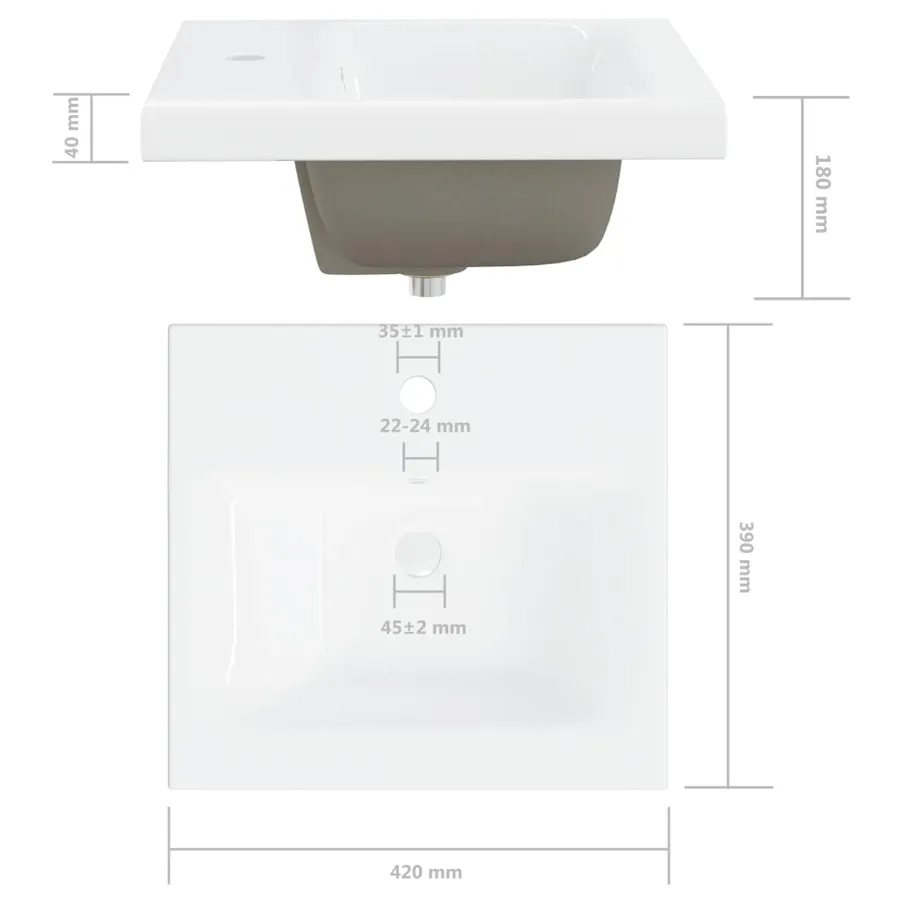 • Wymiary całkowite umywalki: szerokość: 42 cm, głębokość: 39 cm, wysokość: 18 cm.