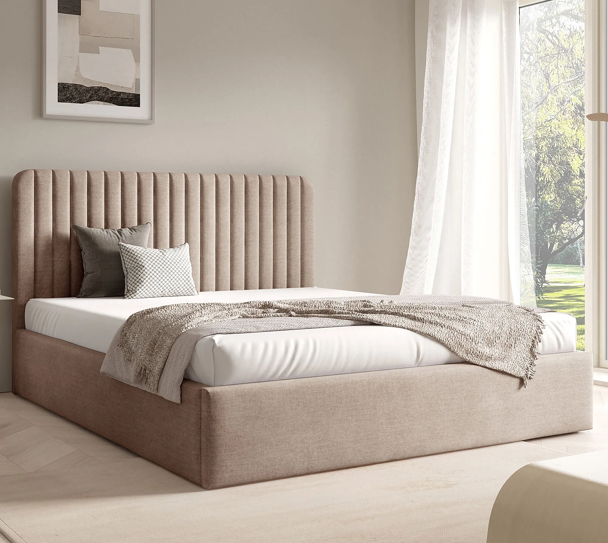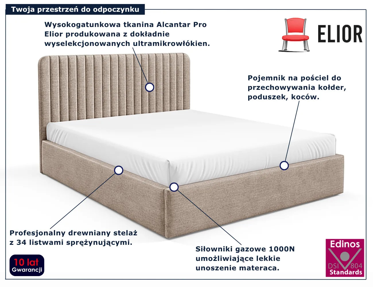 Dotyczy: Beżowe łóżko z pikowanym zagłówkiem 3 rozmiary - Revani