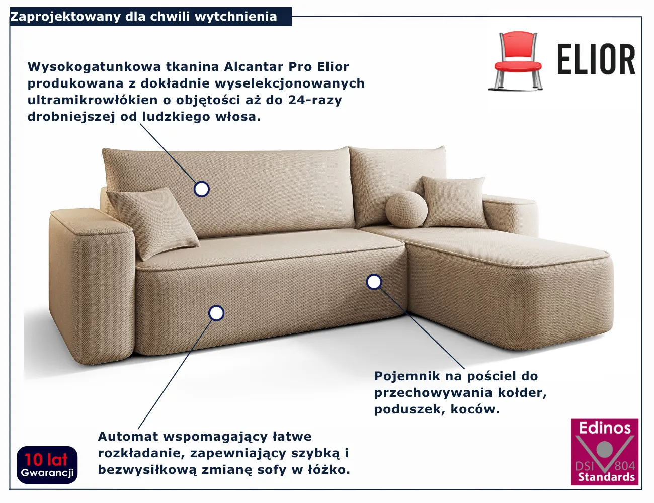 Ciemnobeżowy narożnik rozkładany w kształcie litery L Mossira 3X