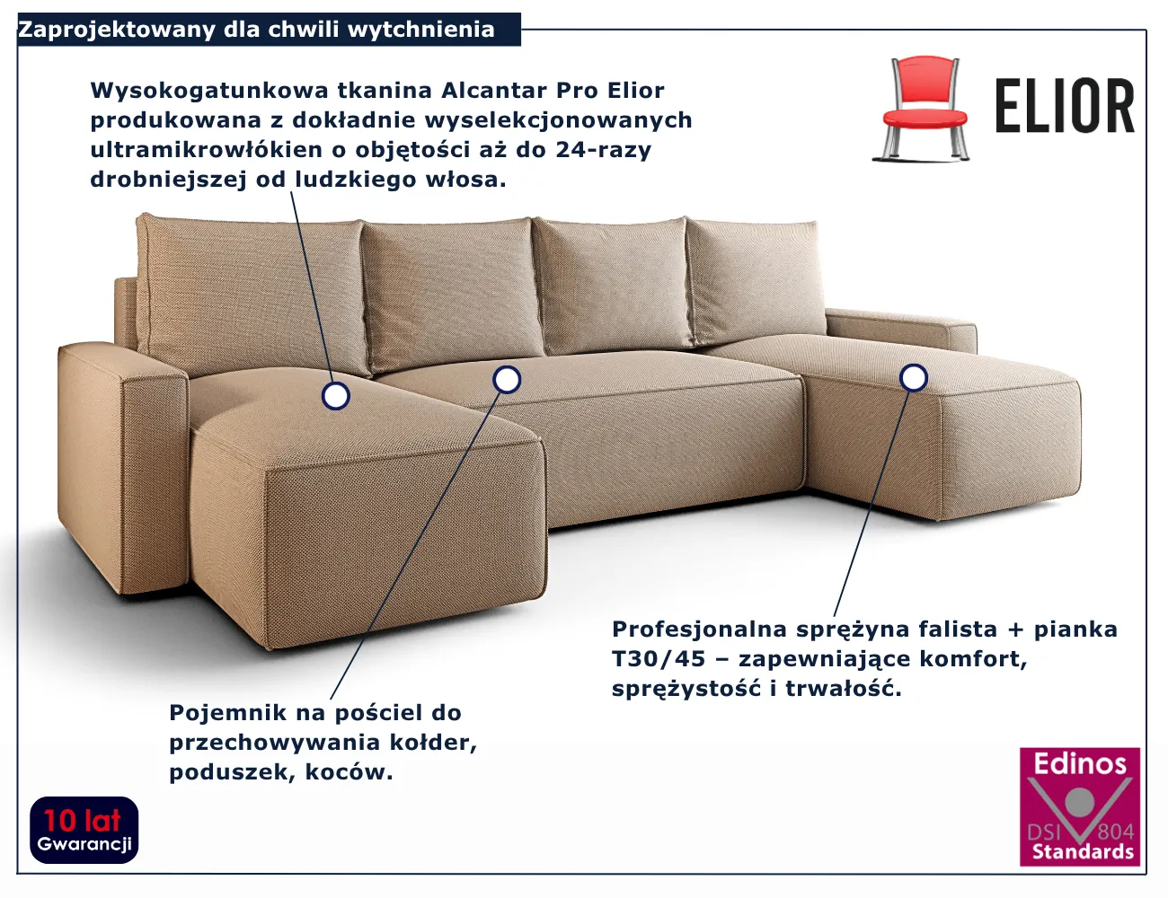 Ciemnobeżowy narożnik rozkładany w kształcie U Meltix 3X