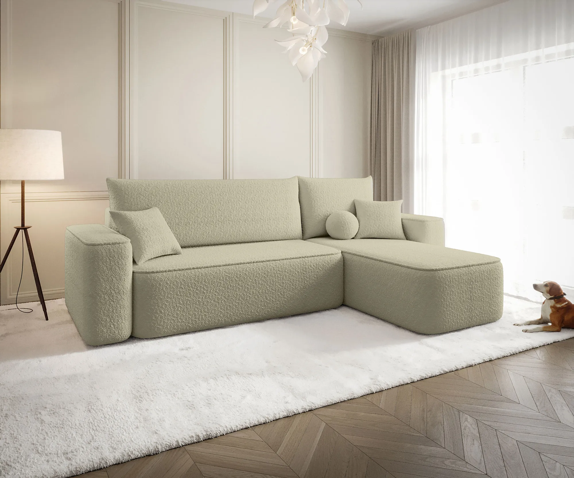 Ciemnobeżowy rozkładany narożnik w kształcie L - Mossira 4X