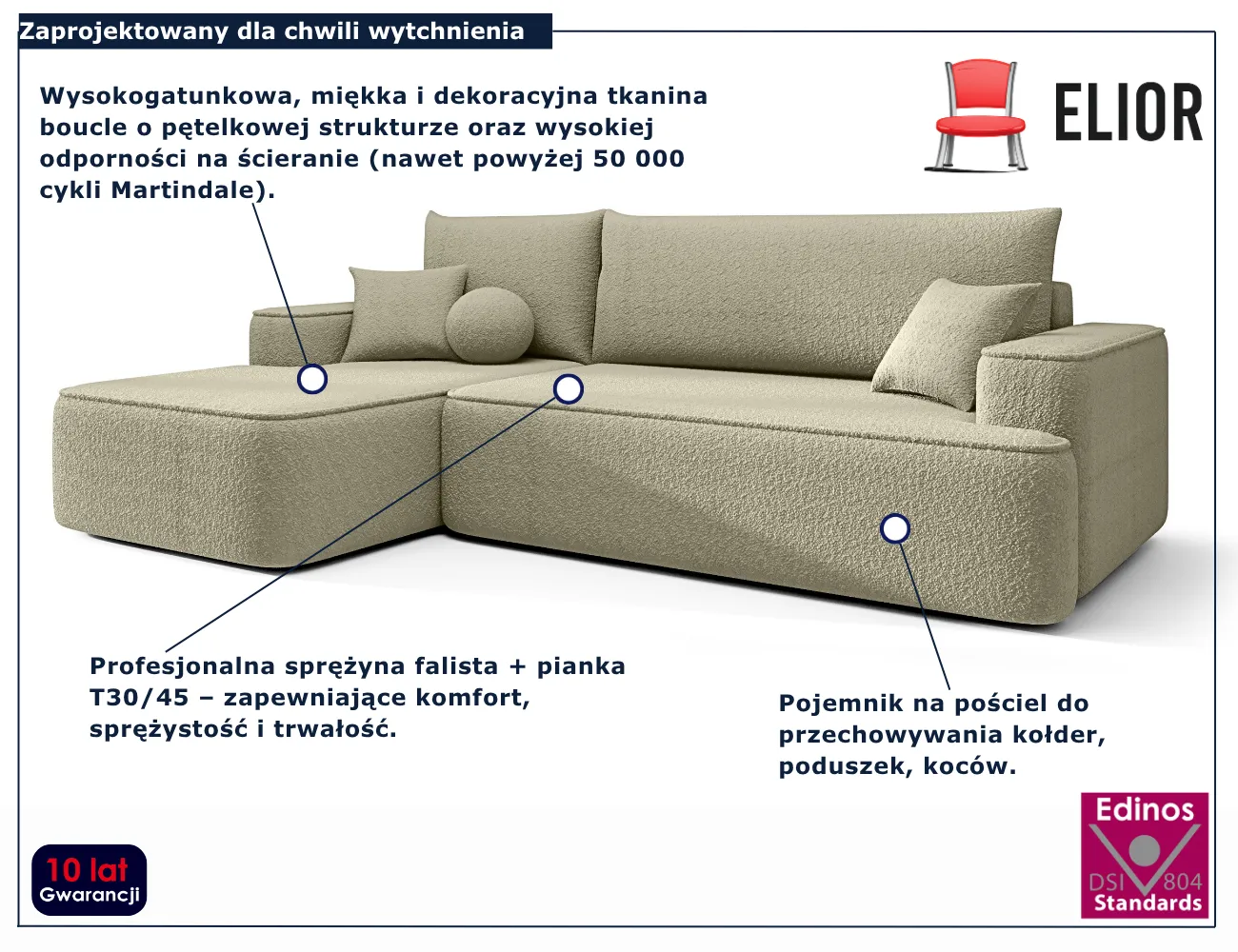 Dotyczy: Beżowy narożnik rozkładany z pojemnikiem - Selvori 4X