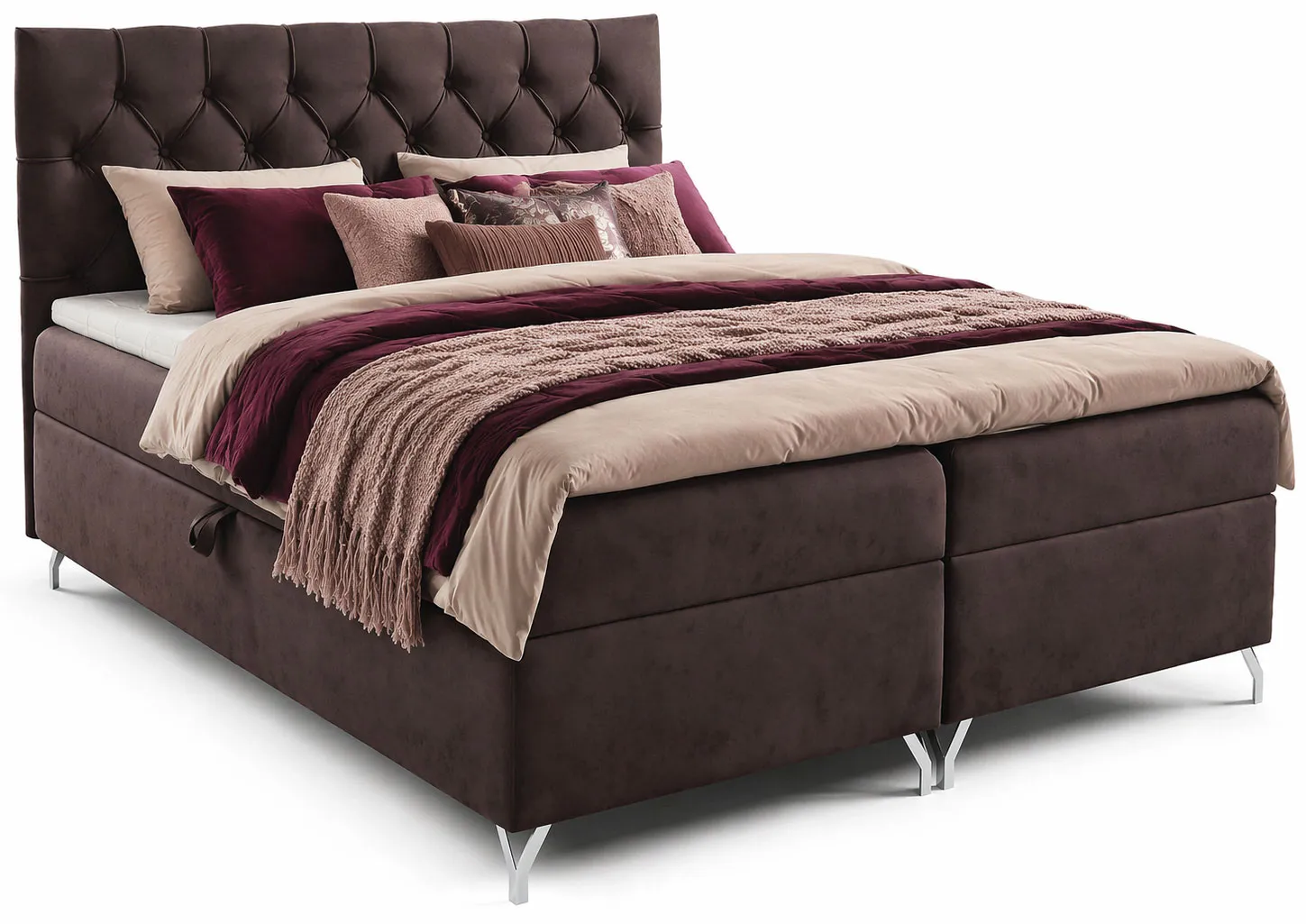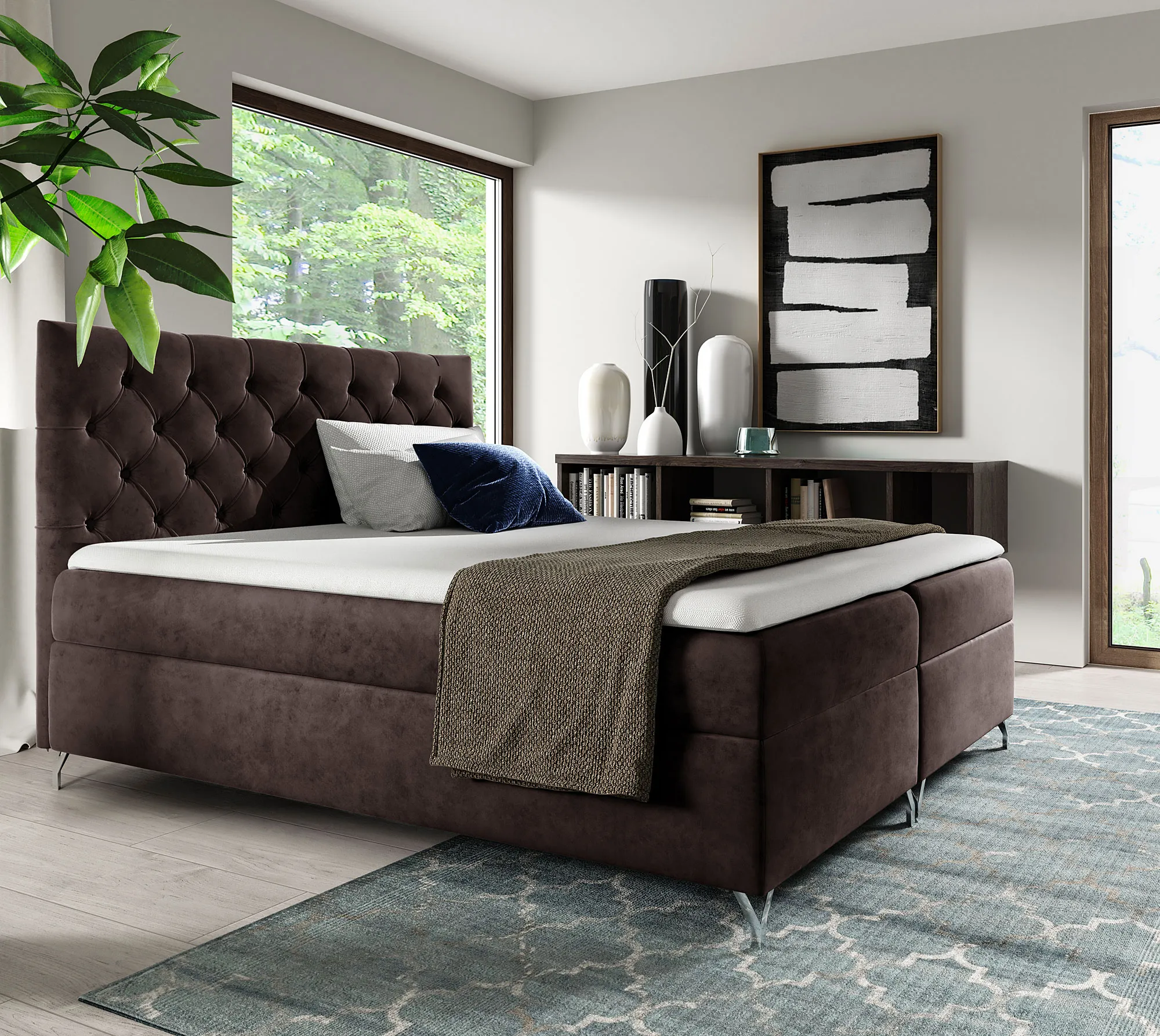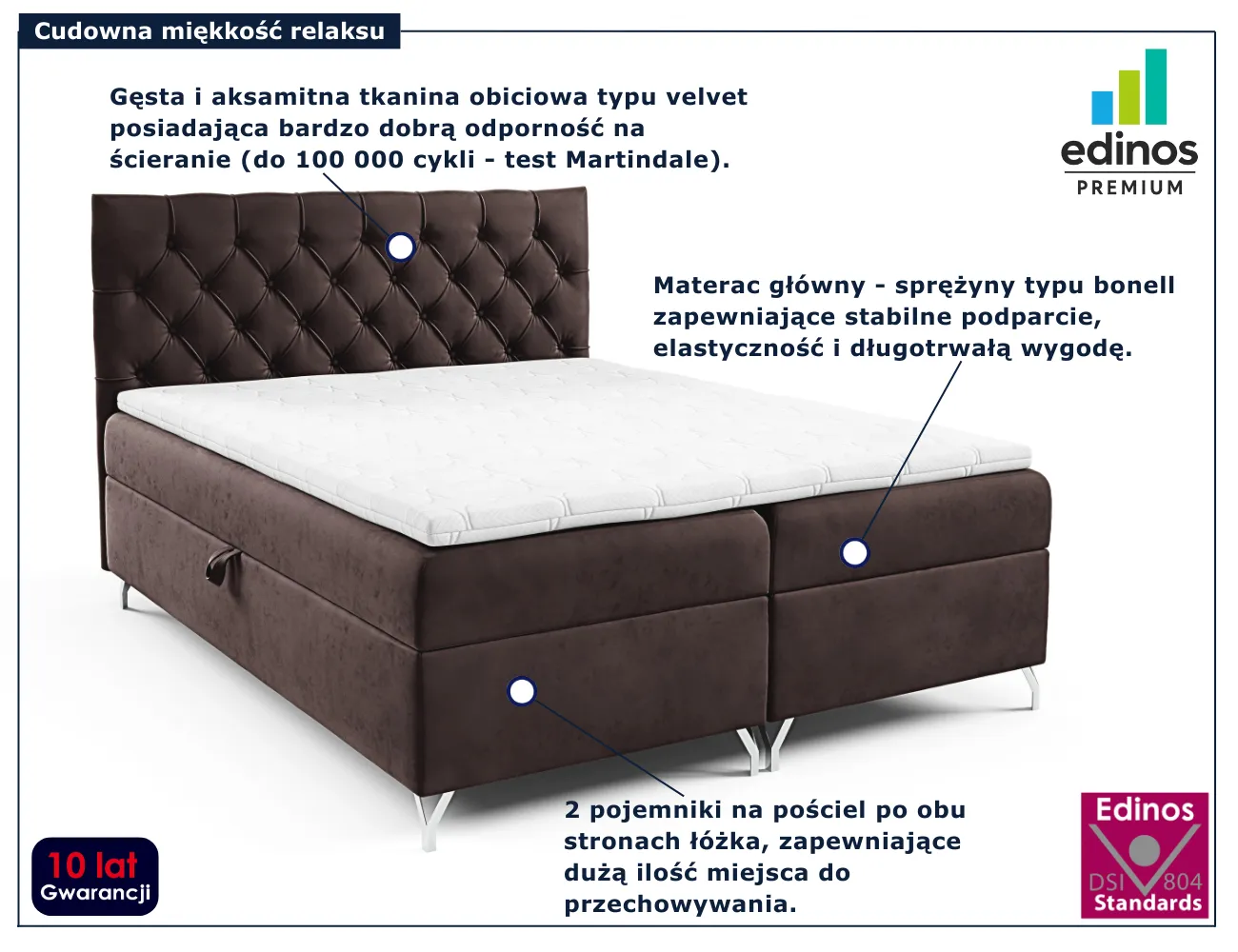 Ciemnobrązowe welurowe łóżko pikowane 5 rozmiarów - Lunavello 3X