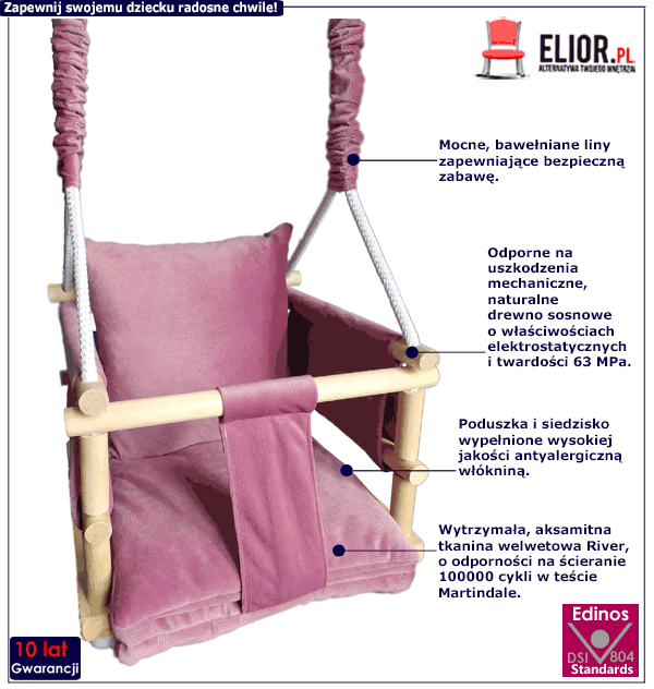 Dotyczy: Jasnoróżowa huśtawka kubełkowa dla dzieci - Eleonor