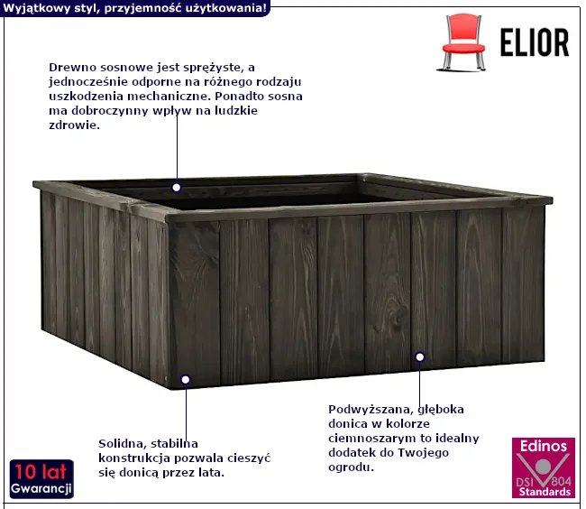 Poznaj ogrodowy świat, gdzie marzenia stają się rzeczywistością, a natura wita Cię otwartymi ramionami. Dziś zapraszamy Cię do odkrycia magii ogrodowych donic Marun 3X marki Edinos Premium - niezwykłych klejnotów, które przemienią Twoją przestrzeń na miejsce pełne uroku i elegancji. Wyobraź sobie, że spacerujesz po swoim ogrodzie, otoczony zapachem kwiatów i szumem liści, a donice Marun 3X są jak magiczne portale do ogrodowego królestwa. Te drewniane skrzynki pełne są potencjału do tworzenia niezapomnianych aranżacji, które sprawią, że Twój ogród stanie się oazą spokoju i piękna. Teraz czas na odważne pomysły i kreatywne wizje, które zmienią Twoją przestrzeń na miejsce, o którym zawsze marzyłeś. Zanurz się w ogrodowym świecie Sofory 3X i pozwól swojej wyobraźni rozkwitnąć wraz z kwitnącymi roślinami i malowniczymi krajobrazami.