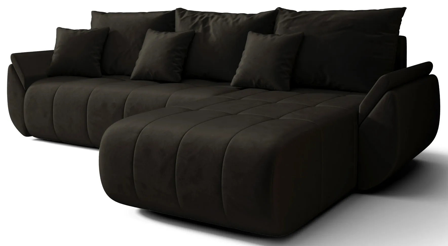 Narożnik welurowy Ikto marki Edinos Premium to propozycja dla osób ceniących elegancję, wysoką jakość wykonania oraz funkcjonalność w nowoczesnym wydaniu. Zaprojektowany w kształcie litery L, idealnie wpisuje się w przestrzeń salonu, zapewniając wygodne miejsce do wypoczynku, spotkań z bliskimi czy relaksu po ciężkim dniu. Narożnik Ikto został obity ekskluzywnym welurem, który nie tylko zachwyca swoim wyglądem, ale także urzeka aksamitną w dotyku fakturą. Ikto to priorytet marki Edinos Premium. Wyjątkowo miękkie poduchy na oparciu zapewniają optymalne podparcie pleców, dzięki czemu codzienny odpoczynek staje się prawdziwą przyjemnością.To idealne miejsce na wieczór z książką, ulubionym serialem lub spotkanie w gronie przyjaciół.