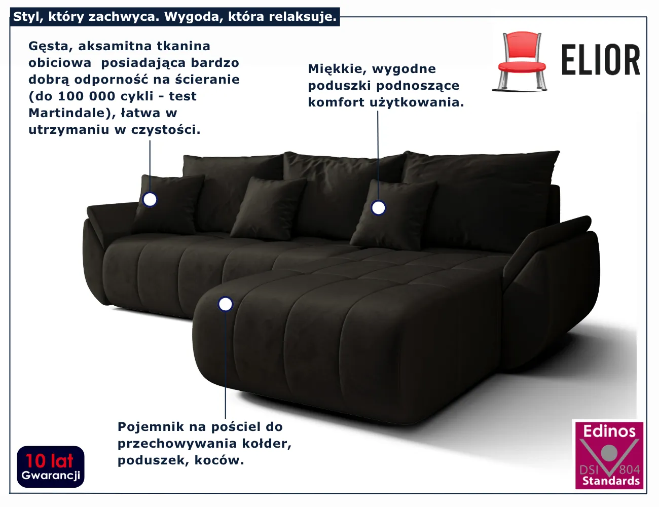 • Ekskluzywny materiał – welur wysokiej jakości, który jest trwały i łatwy w pielęgnacji.