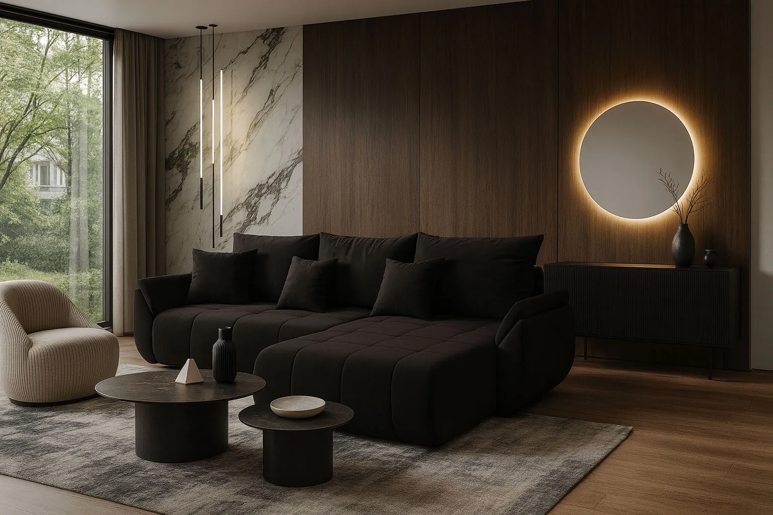 • Uniwersalny kształt – idealny do różnych aranżacji wnętrz w kształcie litery L.