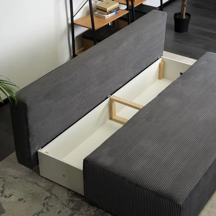Ciemnoszara rozkładana sofa sztruksowa z pojemnikiem Ardala