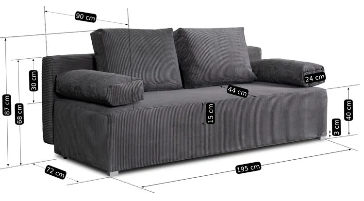 • przechowywanie: sofa posiada praktyczny pojemnik na pościel, który pomoże Ci utrzymać porządek