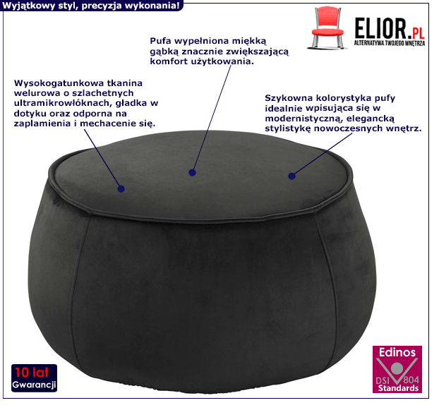 - Modna kolorystyka: ciemnoszara. Kliknij w link i sprawdź także inne inne piękne pufy w sklepie Edinos.pl. Stwórz swój praktyczny zestaw mebli.