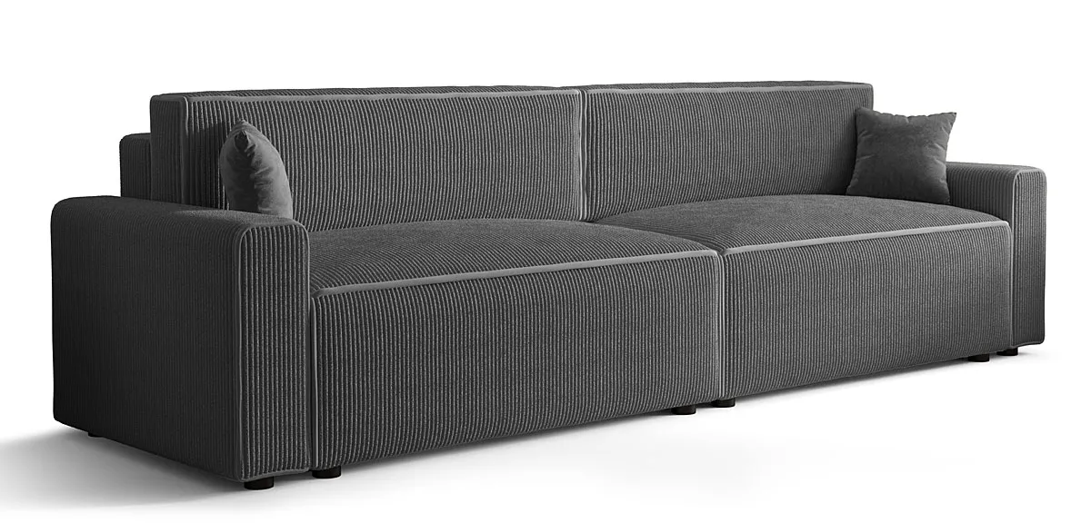 Almoria to sofa stworzona po to, by stać się sercem Twojego salonu. Jej szerokość 292 cm zapewnia przestrzeń, w której każdy znajdzie dla siebie wygodne miejsce – czy to podczas rodzinnego seansu filmowego, leniwego popołudnia z książką, czy spotkania z przyjaciółmi. To mebel, który zachwyca prostą, geometryczną formą, a jednocześnie oferuje pełną funkcjonalność. Dzięki wbudowanemu automatowi rozkładania, w kilka chwil zmienia się w łóżko o powierzchni spania 262 × 130 cm, gwarantując komfortowy sen dla dwóch osób.