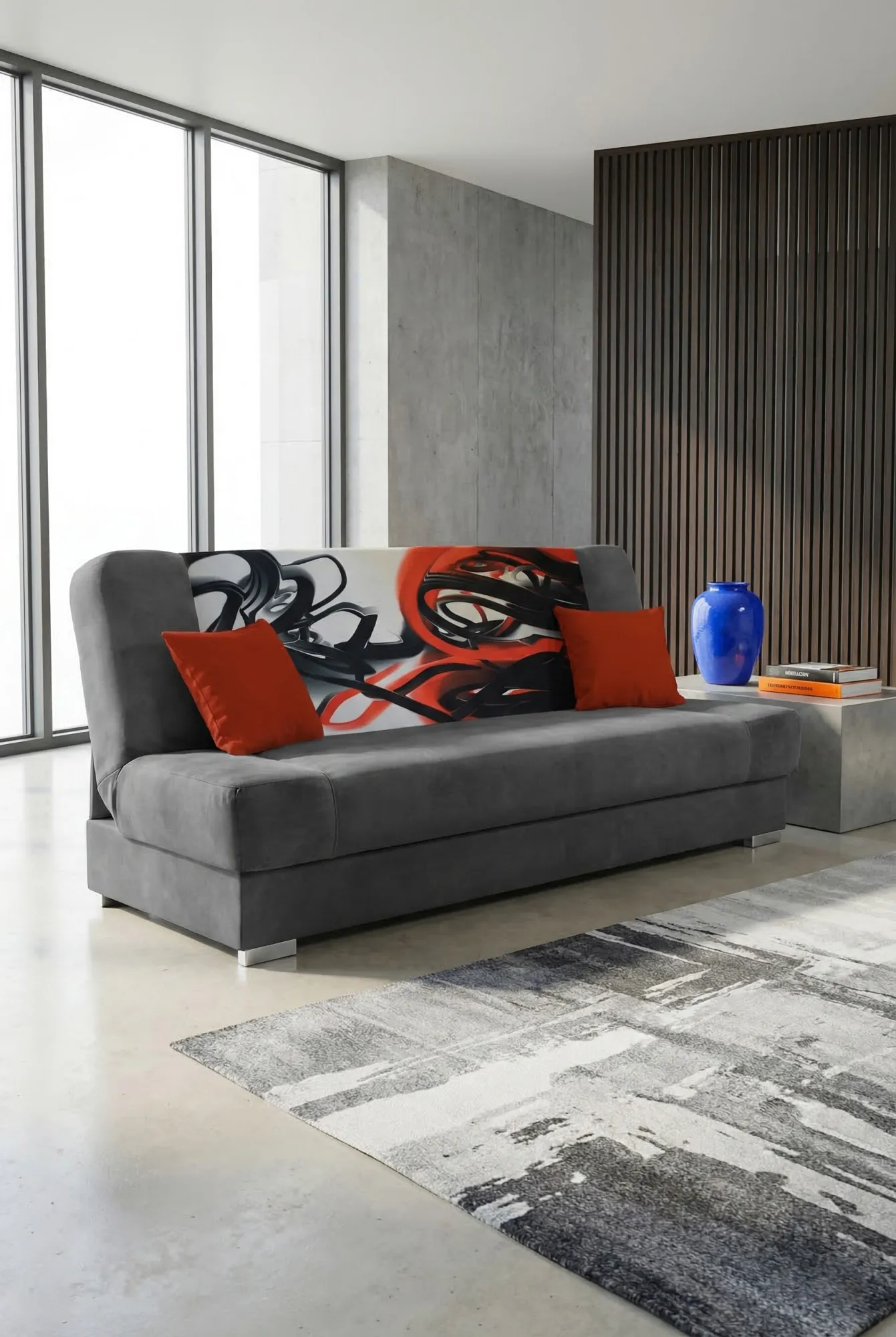 Ciemnoszara wersalka rozkładana z kolorowym oparciem - Piovia 20X