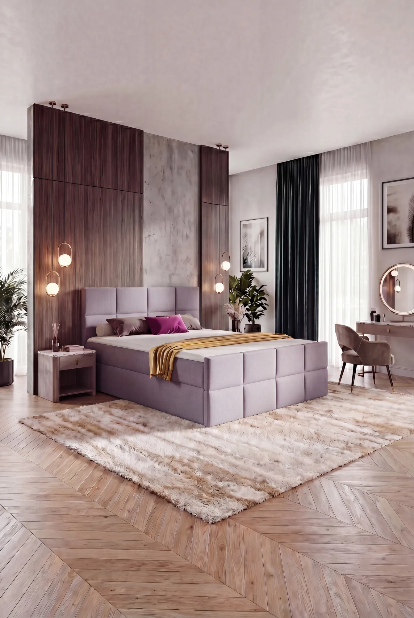 Sypialnia to nie tylko miejsce do spania. To Twoja prywatna przestrzeń wyciszenia, regeneracji i codziennego resetu. Valmerio marki Edinos Premium zostało stworzone po to, by każdy wieczór zaczynał się poczuciem komfortu, a każdy poranek - spokojem. Charakterystyczne, geometryczne pikowania na zagłówku i froncie łóżka nadają mu eleganckiego, nowoczesnego wyglądu. Prosta, masywna bryła sprawia, że model prezentuje się stabilnie i luksusowo, jednocześnie nie przytłaczając wnętrza. To łóżko, które buduje klimat sypialni już od pierwszego spojrzenia. Wyobraź sobie miękkie światło lampki nocnej, świeżą pościel i idealnie podparte plecy podczas wieczornego czytania. Wysoki zagłówek nie tylko świetnie wygląda - zapewnia wygodne oparcie i poczucie otulenia.