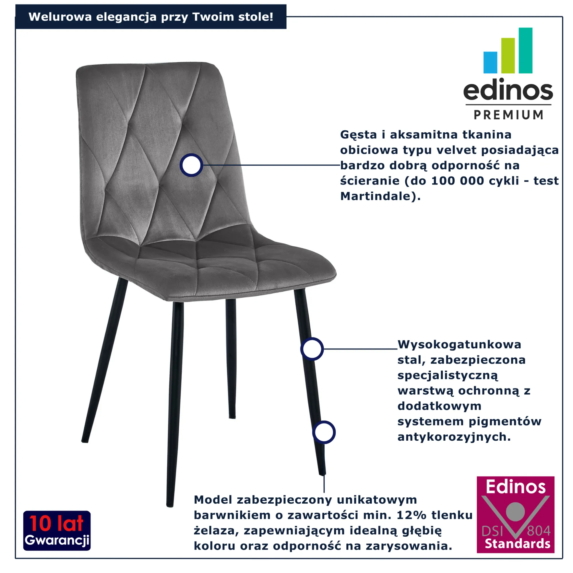 Dotyczy: Szare welurowe krzesło metalowe tapicerowane - Rexon
