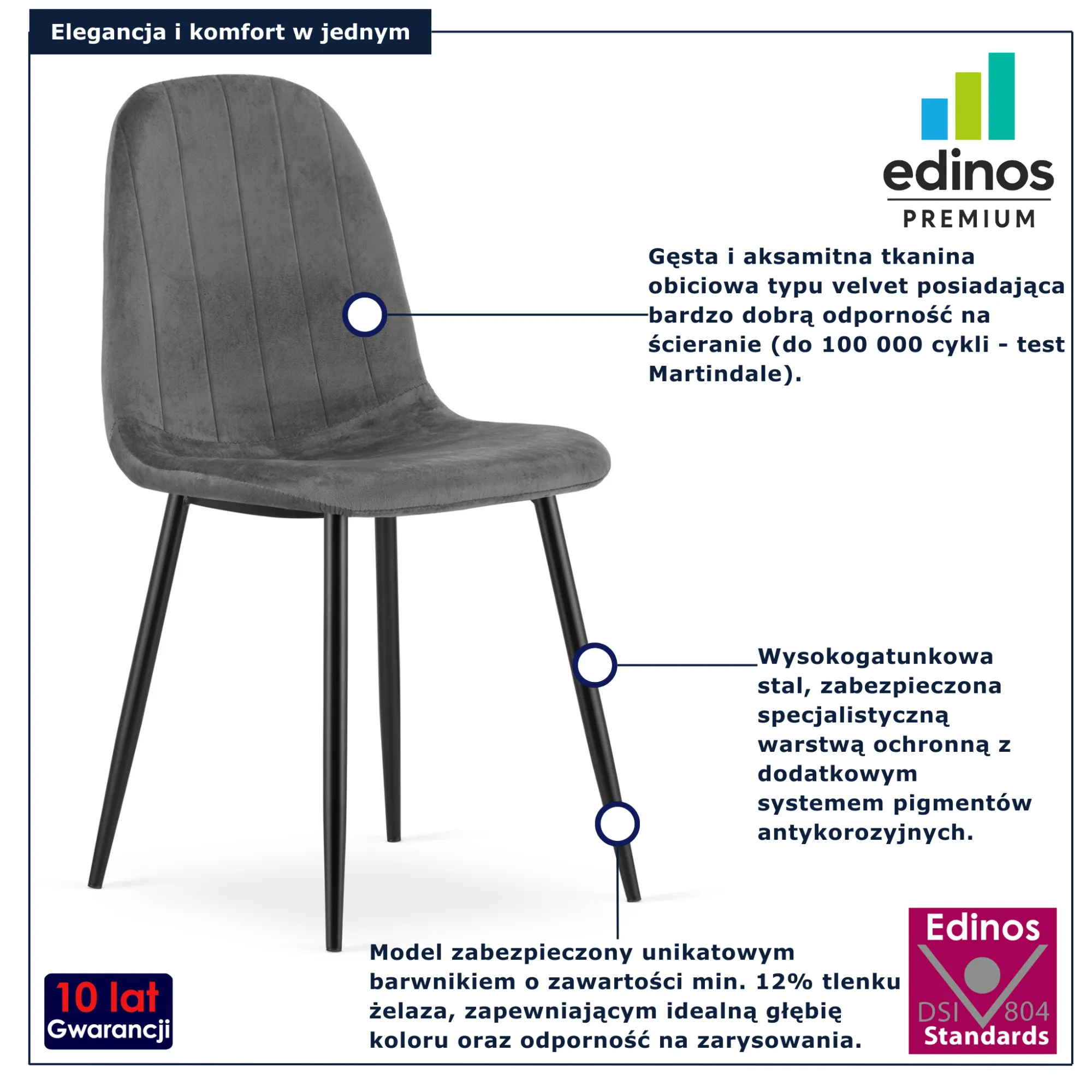 Dotyczy: Czarne metalowe krzesło welurowe - Oret 3X