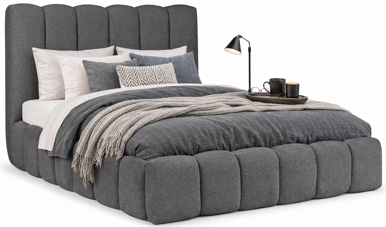 Aranżacja wnętrza z ciemnoszarym łóżkiem Nuvessa