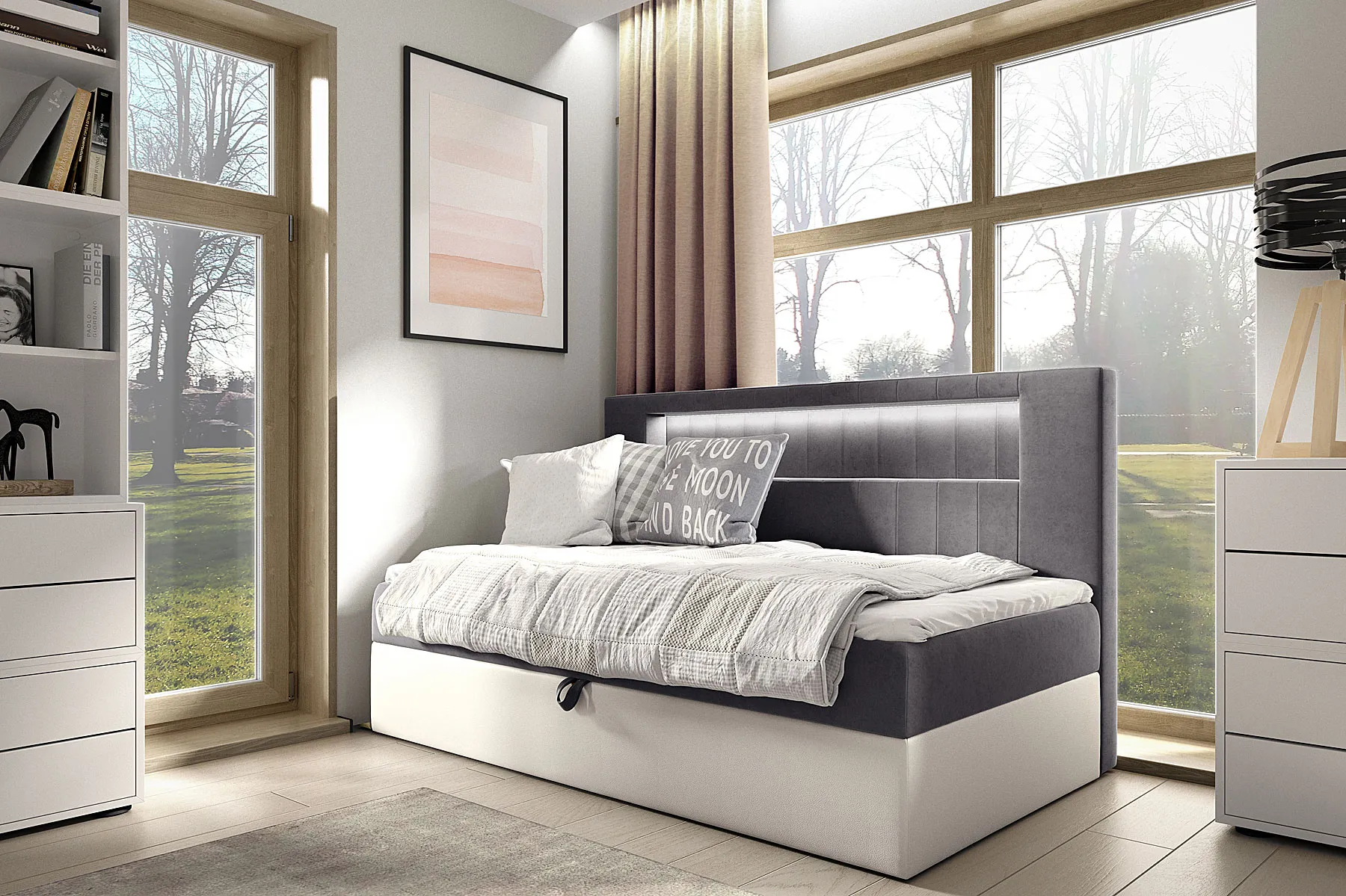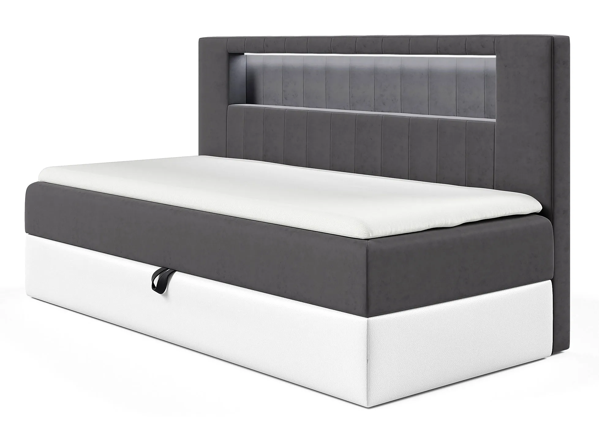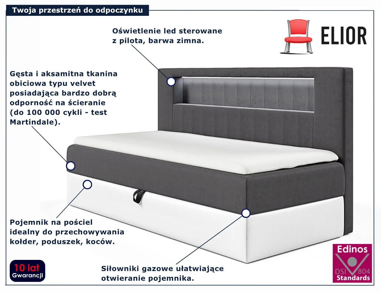 Ciemnoszare łózko kontynentalne z oświetleniem LED 3 rozmiary - Lorvani