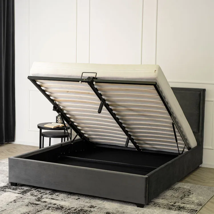 Ciemnoszare łóżko welurowe z zagłówkiem 160x200 Lulox