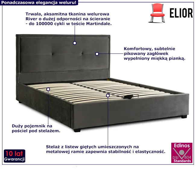 • aksamitna tapicerka dodaje całej konstrukcji szlachetności i sprawia, że łóżko doskonale się prezentuje