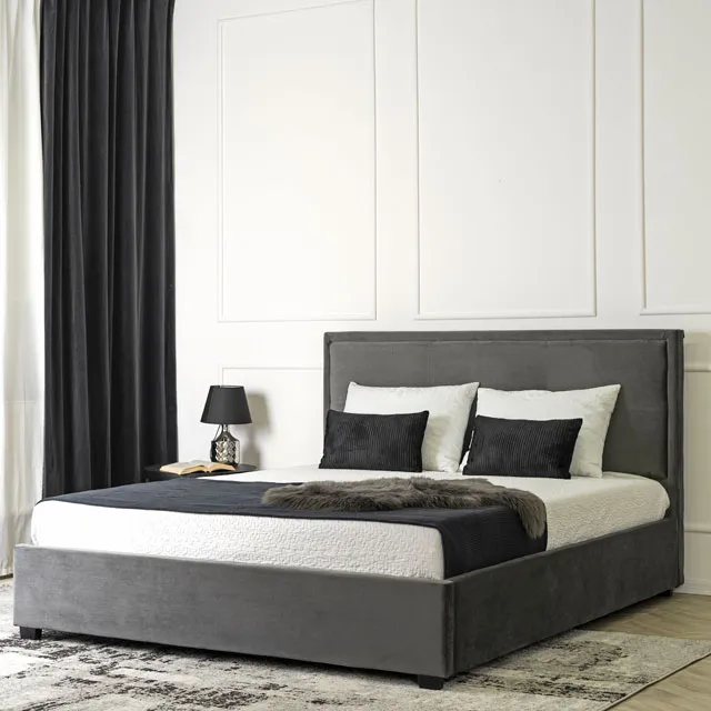 Ciemnoszare łóżko małżeńskie z zagłówkiem 160x200 - Lulox