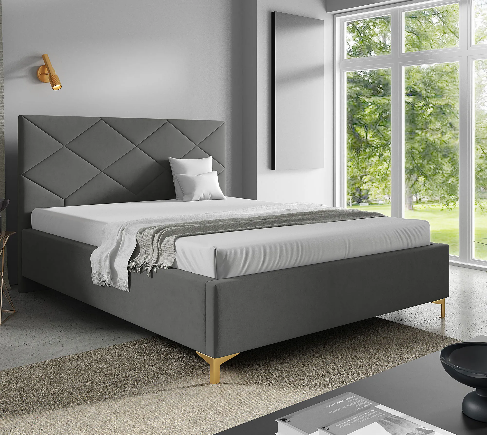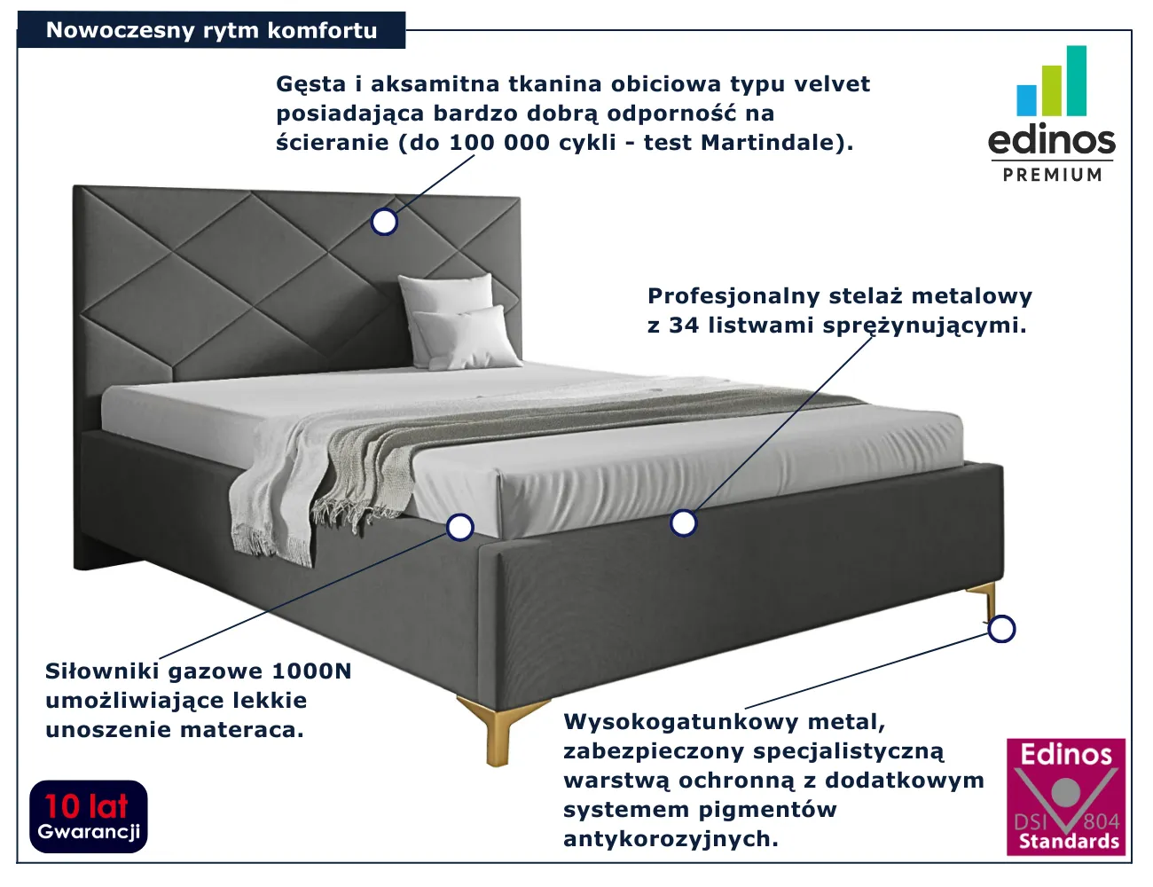 Dotyczy: Czarne łóżko tapicerowane welurem 4 rozmiary - Tollviano