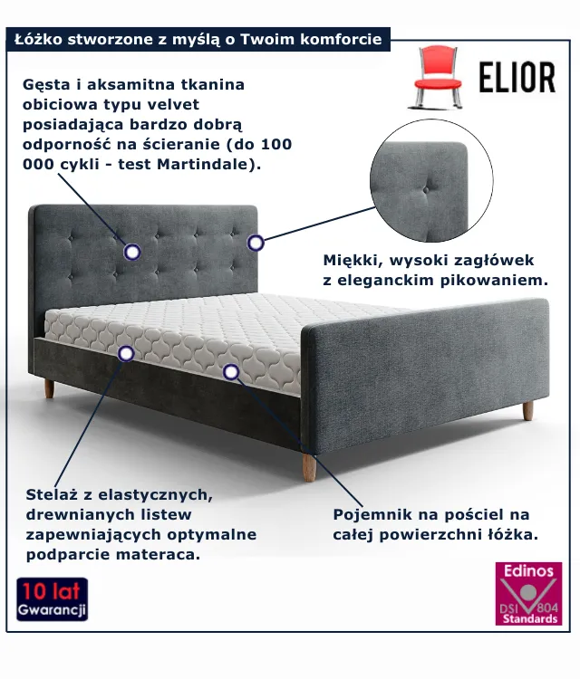 Dotyczy: Ciemnozielone nowoczesne łóżko z pojemnikiem 5 rozmiarów - Montivio