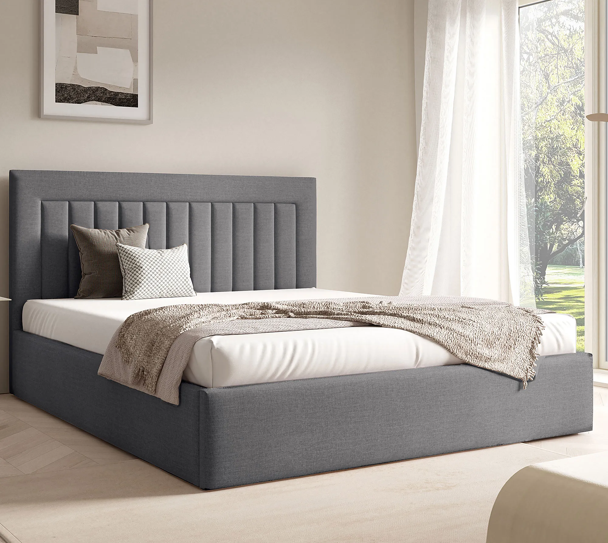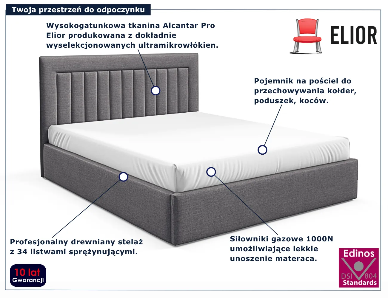 Dotyczy: Ciemobeżowe łóżko z pikowanym zagłówkiem 3 rozmiary - Merassi