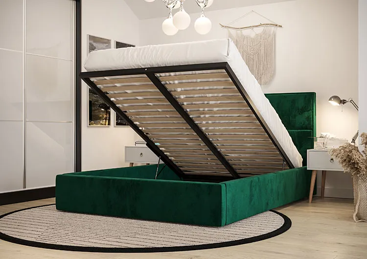 Dotyczy: Zielone tapicerowane welurem łóżko z pojemnikiem 3 rozmiary - Welario