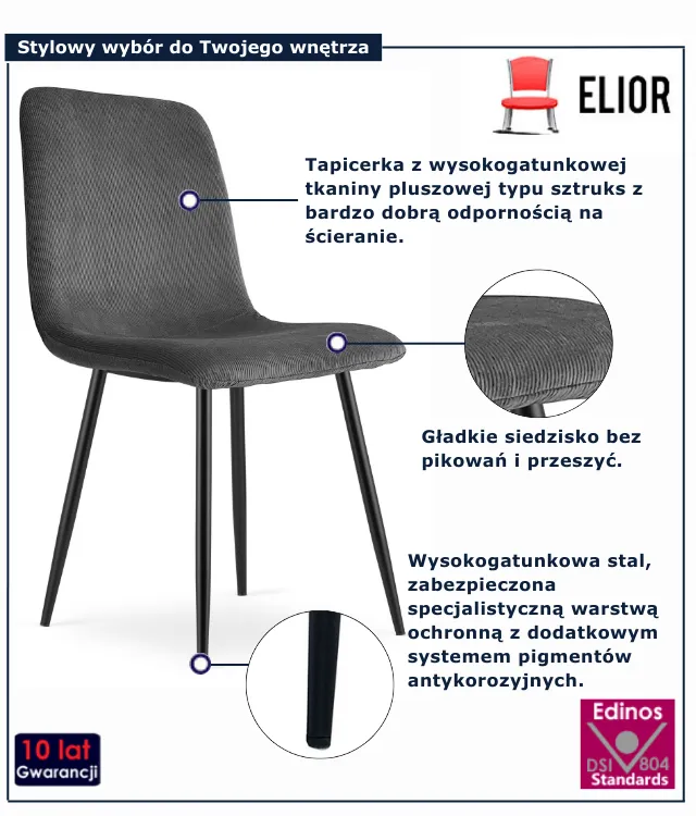 Ciemnoszare krzesło tapicerowane sztruksem do jadalni Ruttis 4X
