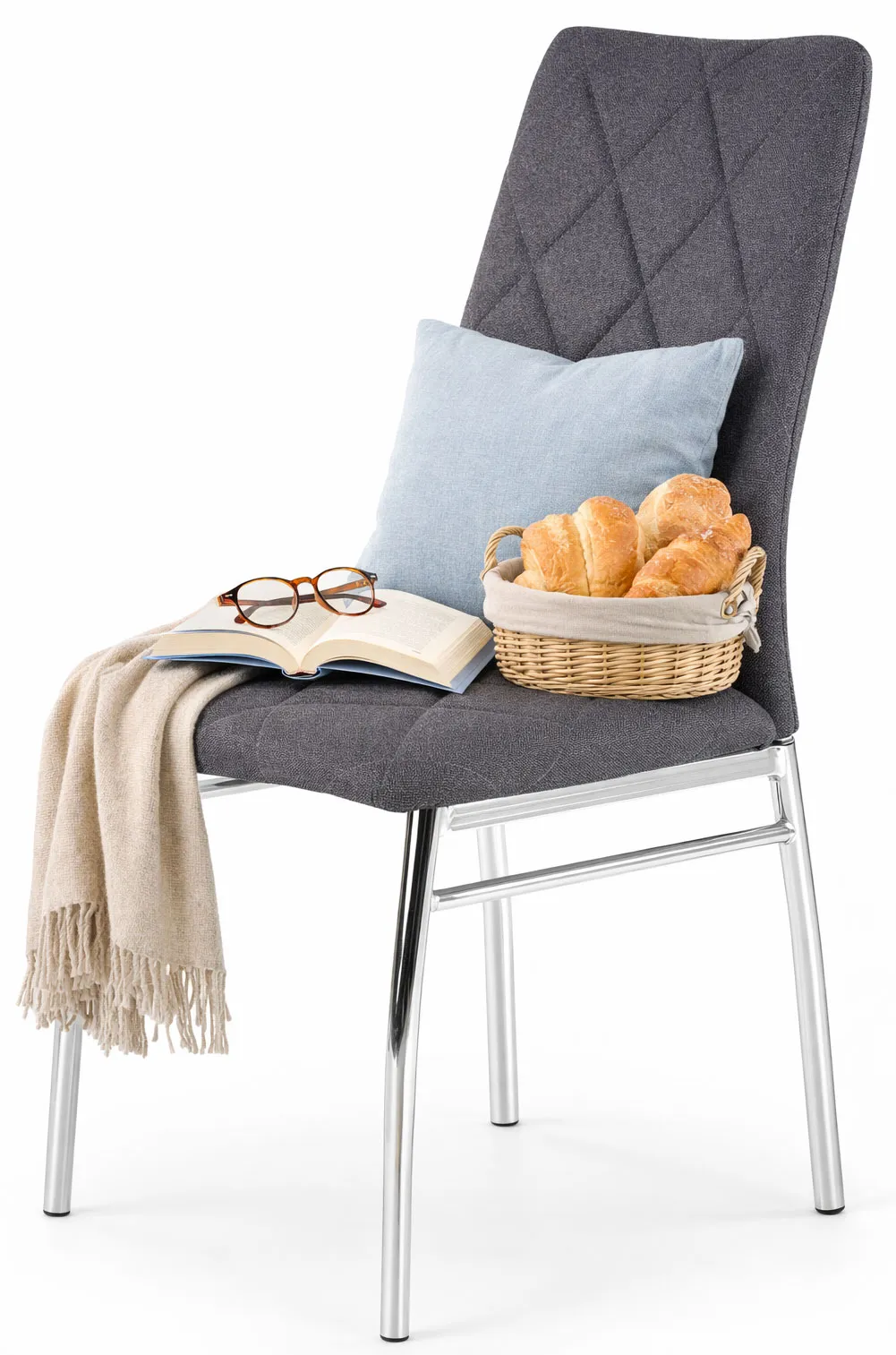Dotyczy: Beżowe tapicerowane metalowe krzesło pikowane - Ivar